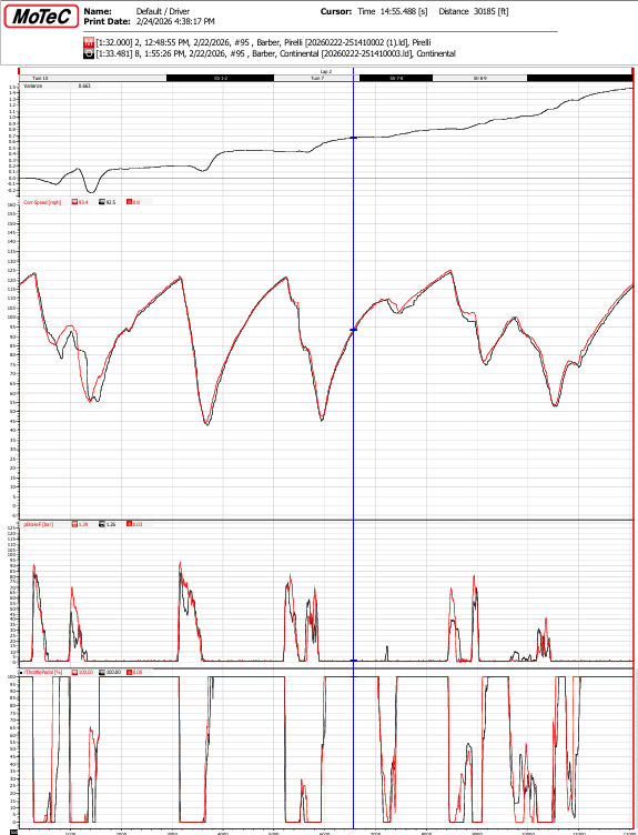 Barber presents a completely different challenge compared to NCM. It is shorter, more technical, and places different loading characteristics on the tire. If the percentage gaps remained consistent, that would give us greater confidence that our original findings were not track-specific.